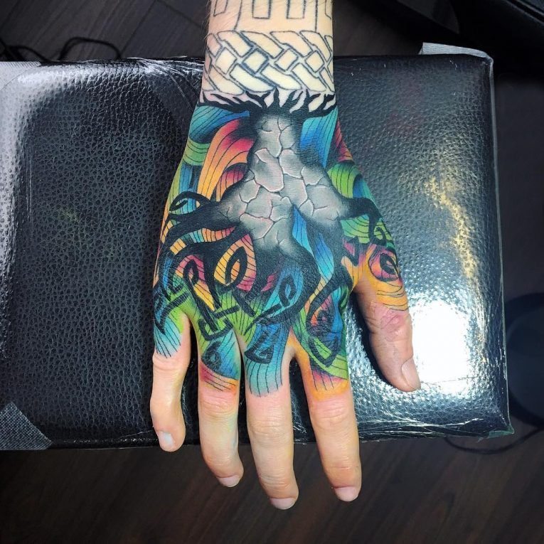 男生手背上彩绘水彩素描创意藤蔓纹身图片