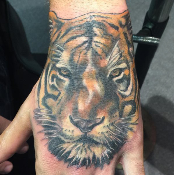 男生手背上彩绘抽象线条小动物老虎纹身图片