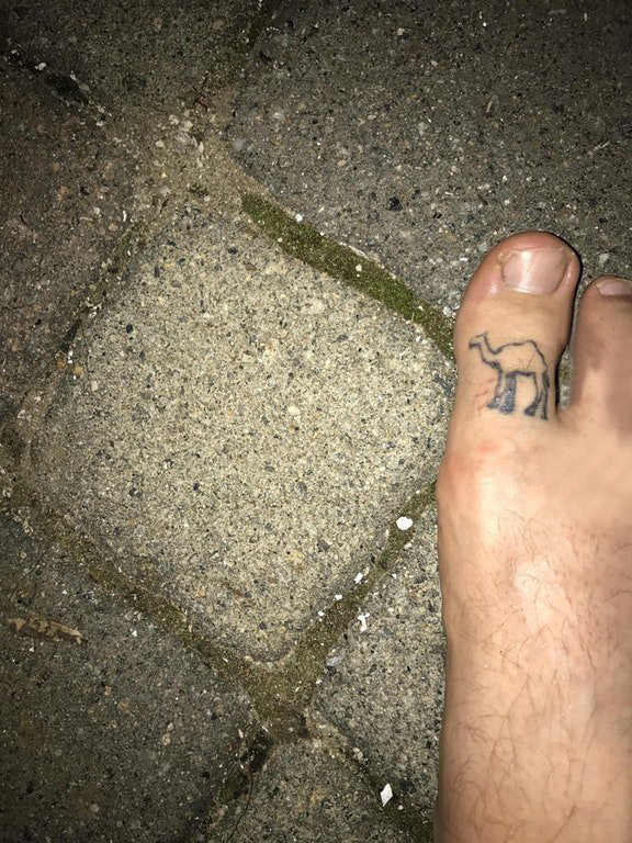 男生脚趾上黑色简单抽象线条小动物骆驼纹身图片