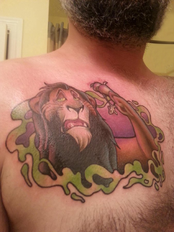 男生胸部彩绘渐变抽象线条卡通小动物狮子纹身图片