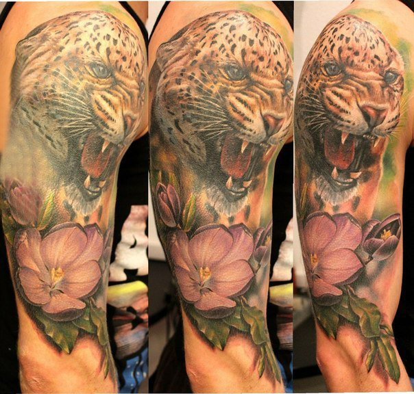 豹子头纹身 男生手臂上豹子头纹身图片