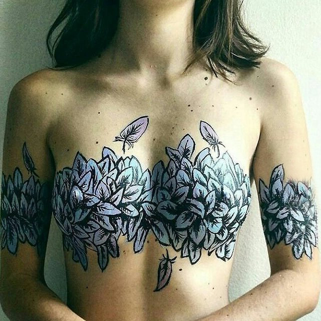 女生胸部纹身 女生胸部彩色的羽毛纹身图片