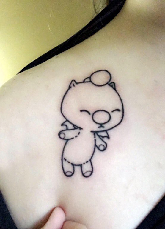 纹身卡通 女生肩部黑色的卡通熊纹身图片