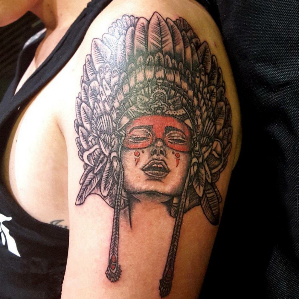 印第安人纹身 男生手臂上印第安人纹身素描图片