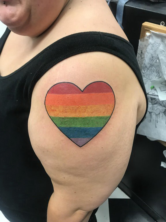 心形纹身图片 男生大臂上彩色的心形纹身图片
