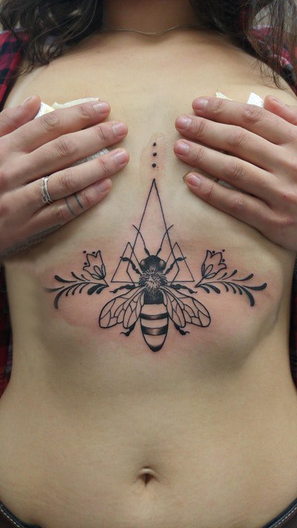 女生胸下纹身 女生胸部几何和蜜蜂纹身图片