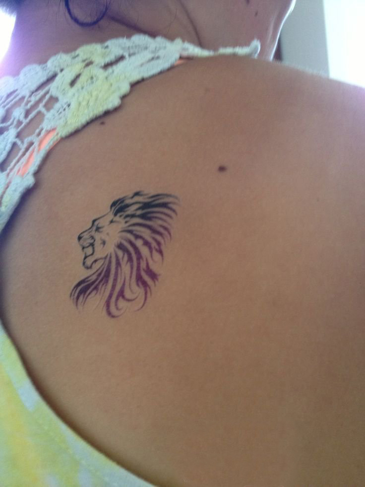 纹身后背女 女生后背上黑色的狮子纹身图片