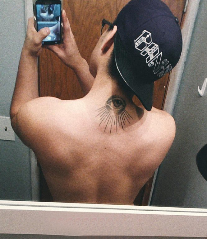 纹身眼睛 男生后颈部黑色的眼睛纹身图片