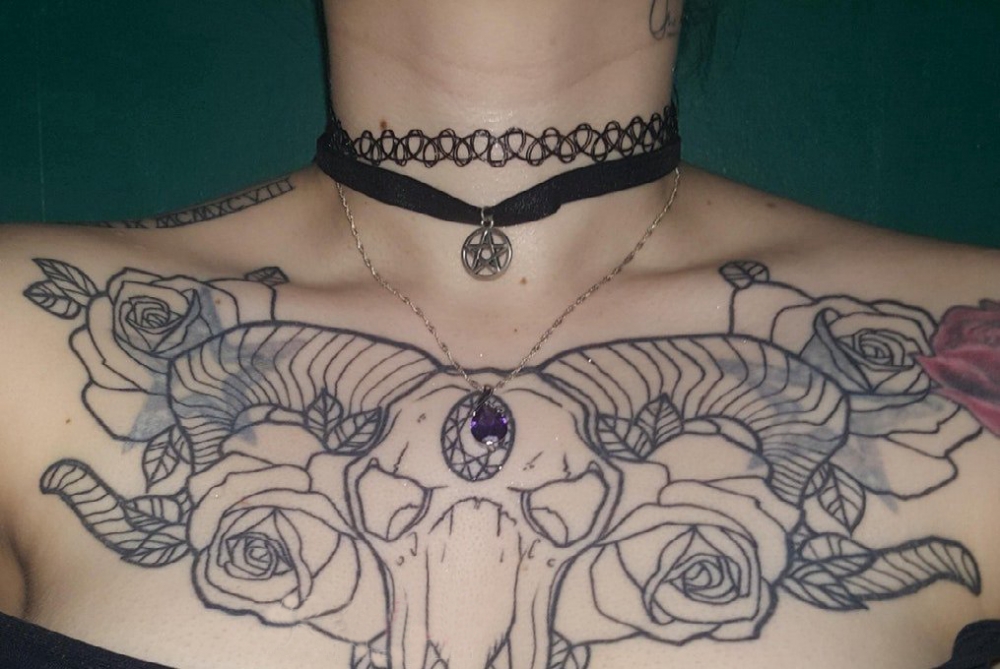 山羊头纹身撒旦 女生锁骨上羊头纹身图片