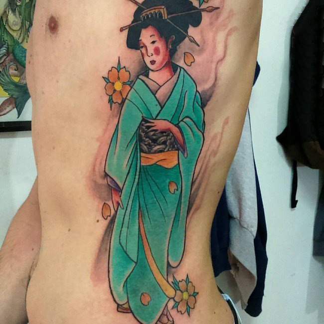 纹身女艺妓 多款简单线条纹身素描日本艺妓纹身图案