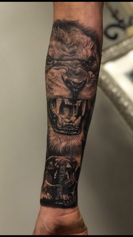 唐狮子纹身 男生手臂上唐狮子纹身图片