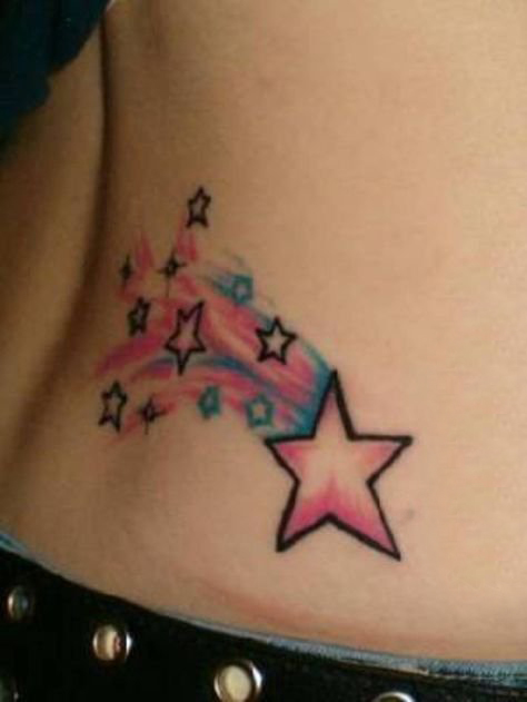 后腰纹身 女生后腰上彩色的五角星纹身图片