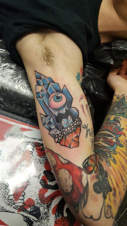 手臂纹身素材 男生手臂上彩色的卡通晶石纹身图片