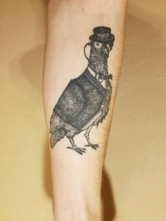 鸽子纹身 男生手臂上黑灰的鸽子纹身图片