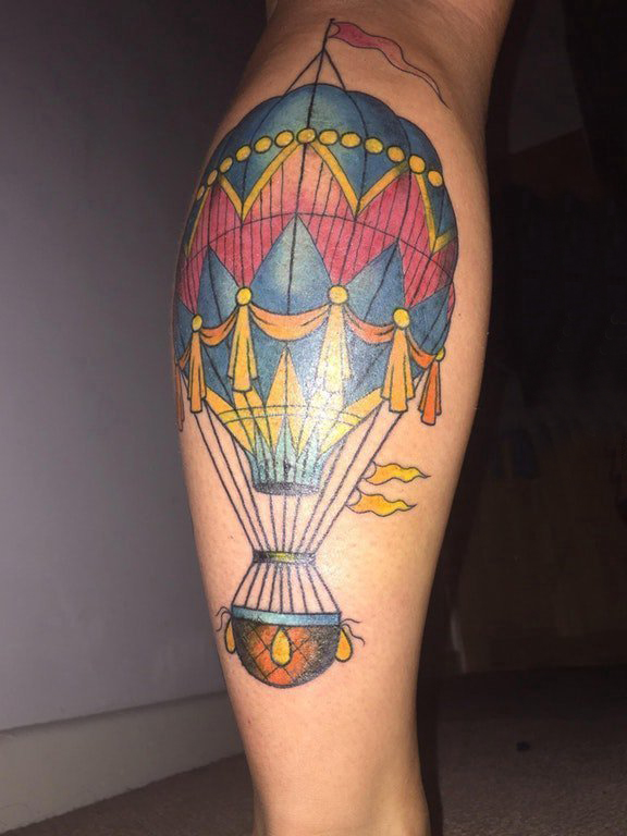 欧美小腿纹身 男生小腿上彩色的热气球纹身图片