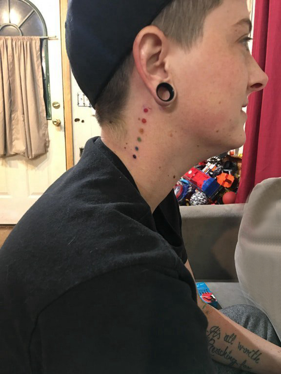 后颈纹身女 女生后颈上彩色圆形纹身图片