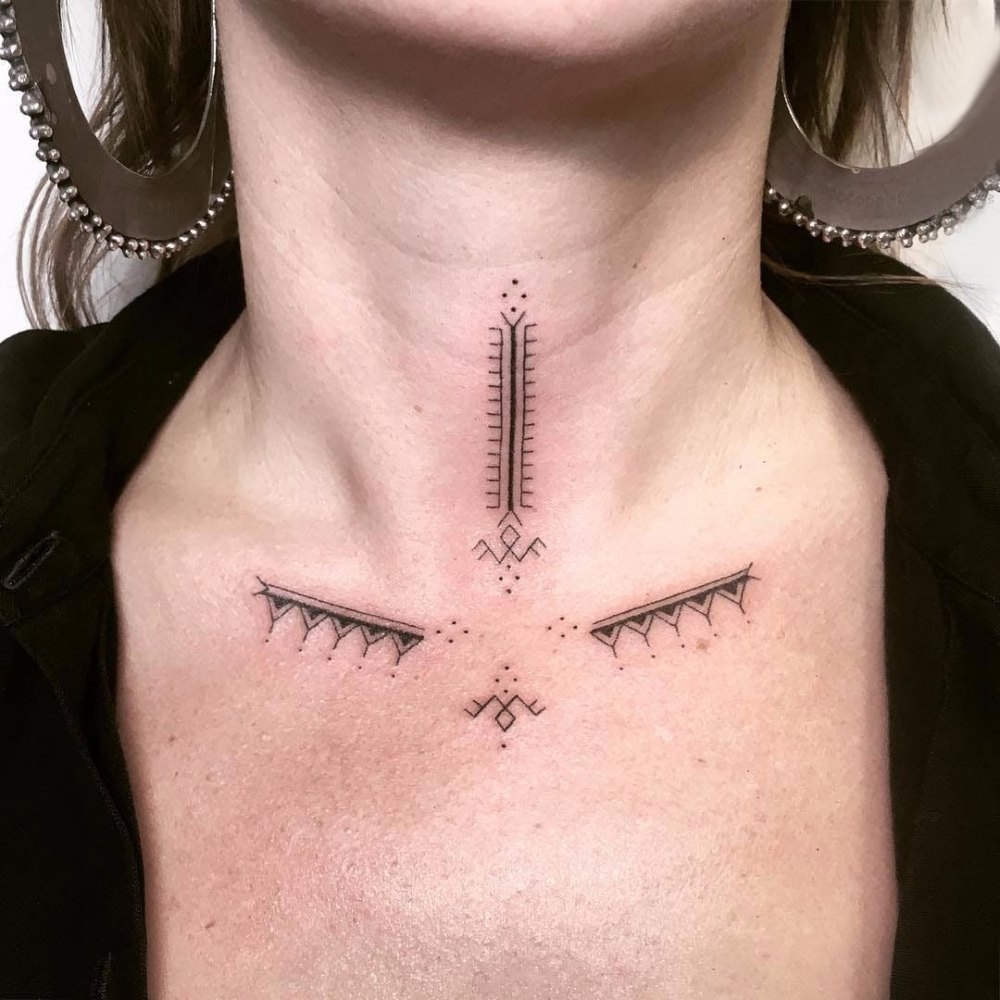 颈部纹身设计 女生颈部黑色的图腾纹身图片