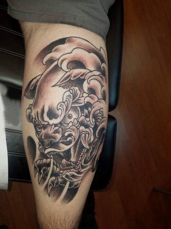 纹身浪花 男生小腿上黑灰的浪花纹身图片