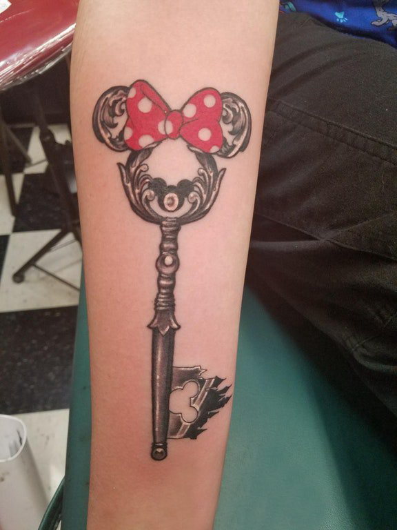 钥匙纹身图案 女生手臂上蝴蝶结和钥匙纹身图片