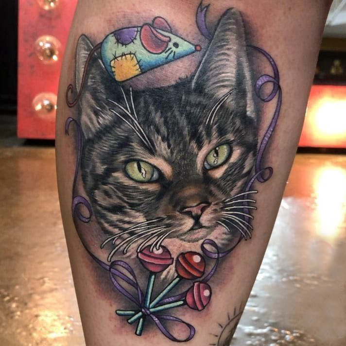欧美小腿纹身 男生小腿上老鼠和猫咪纹身图片