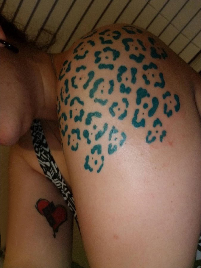 花豹纹身 女生大臂上黑色的豹纹纹身图片