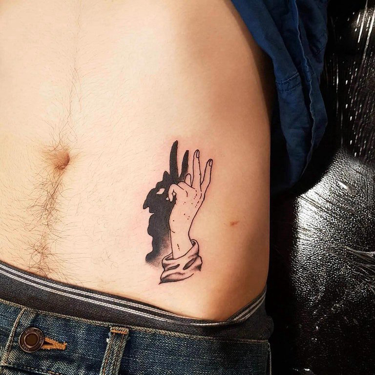 纹身手指 男生腹部上黑灰的手指纹身图片