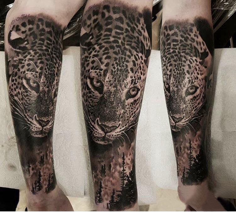 豹子头纹身 男生手臂上写实的豹子头纹身图片