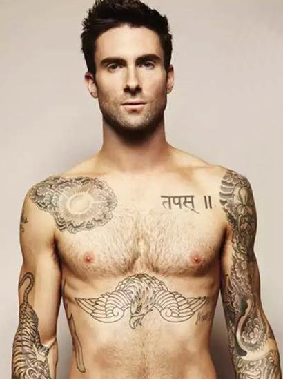 美国纹身明星 亚当.莱文身上黑灰色的动物纹身图片
