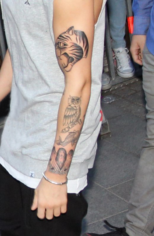 贾斯丁比伯的纹身 明星手臂上黑灰色的动物纹身图片