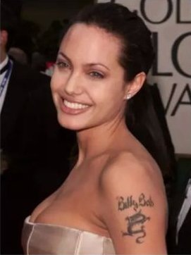 美国纹身明星 安吉丽娜朱莉手臂上龙和英文纹身图片