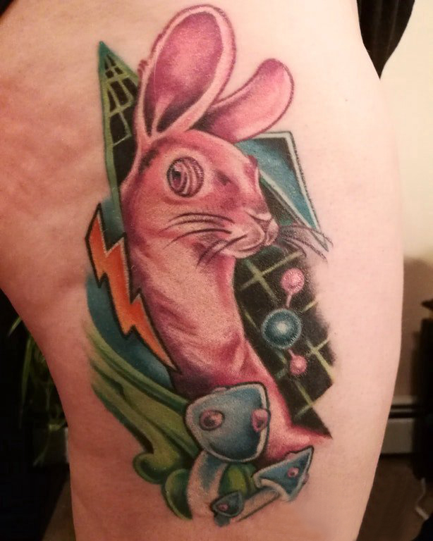 垂耳兔子纹身 女生大腿上蘑菇和兔子纹身图片