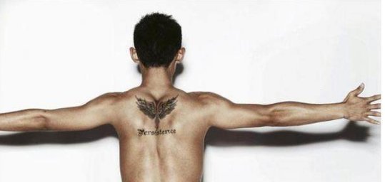 张继科的纹身 明星后背上雄鹰和英文纹身图片