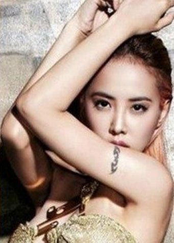 蔡依林纹身图片 明星手臂上极简的黑色纹身图片