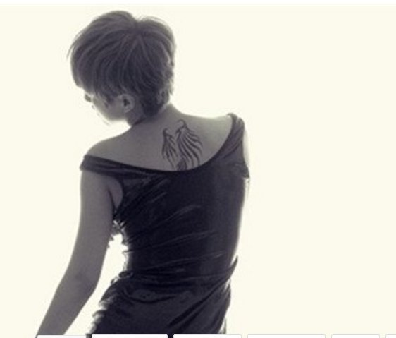 中国纹身明星 谭维维后背上极简的翅膀纹身图片