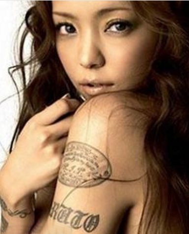 明星纹身 安室奈美惠手臂上黑色的印章纹身图片