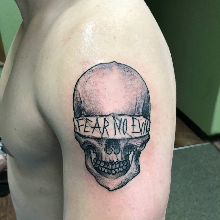 大臂纹身图片 男生大臂上蒙面的骷髅纹身图片