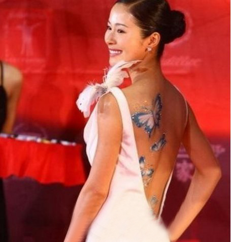 中国纹身明星 明星后背上唯美的蝴蝶纹身图片