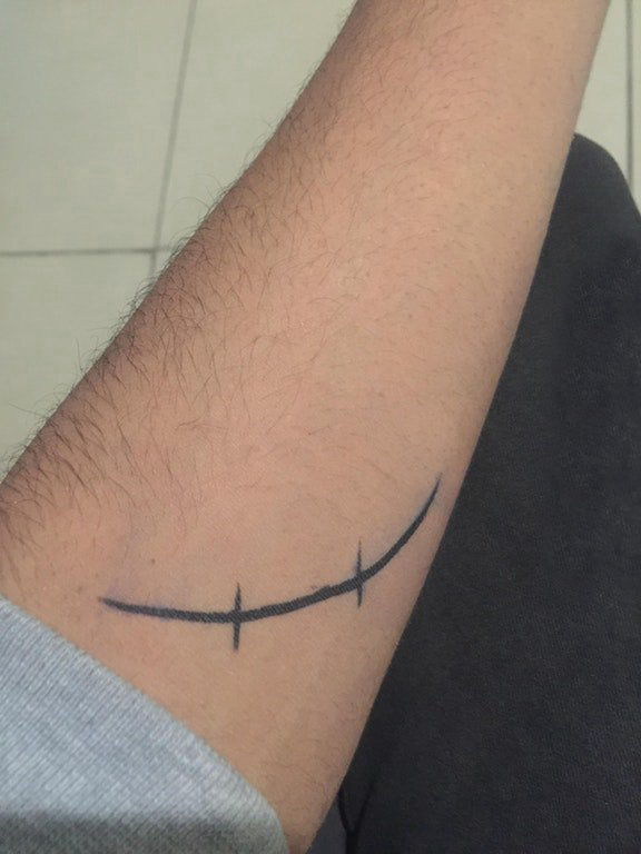 极简线条纹身 男生手臂上黑色的极简线条纹身图片