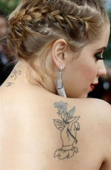 美国纹身明星 明星后背上手和花朵纹身图片