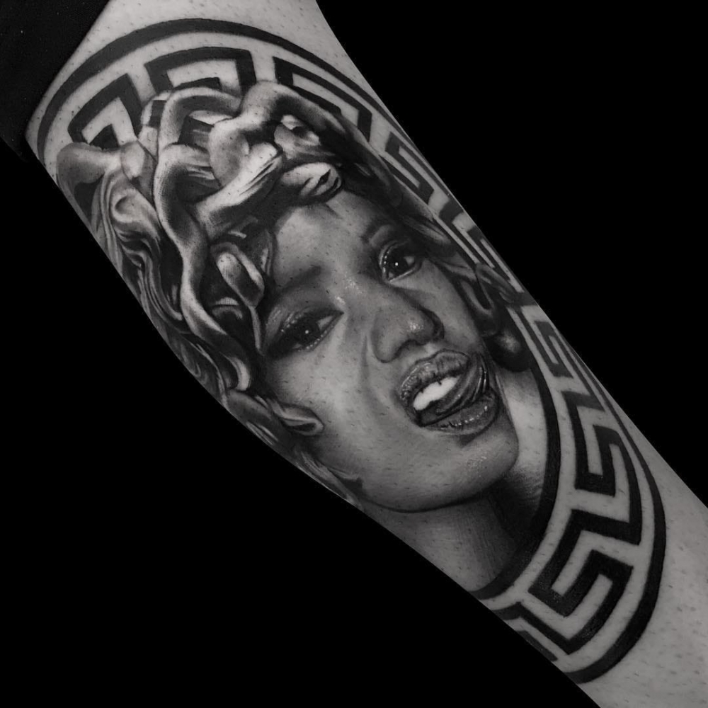 欧美肖像纹身 手臂上大腿上黑白灰人物纹身的欧美肖像纹身图案