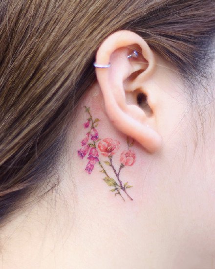 耳朵纹身--9张耳朵周边可以纹的小清新纹身图案