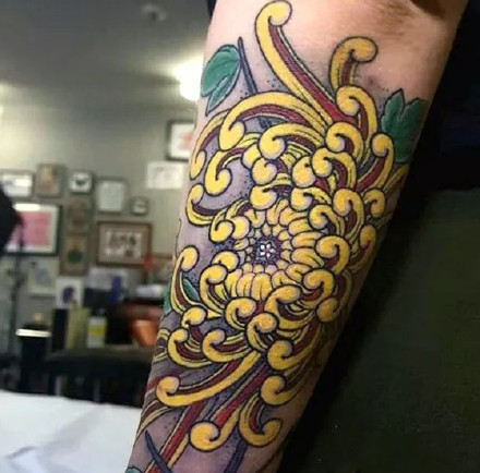 菊花纹身--9张漂亮的传统菊花纹身作品图案