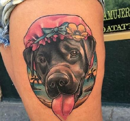 • 写实大腿狗纹身图案