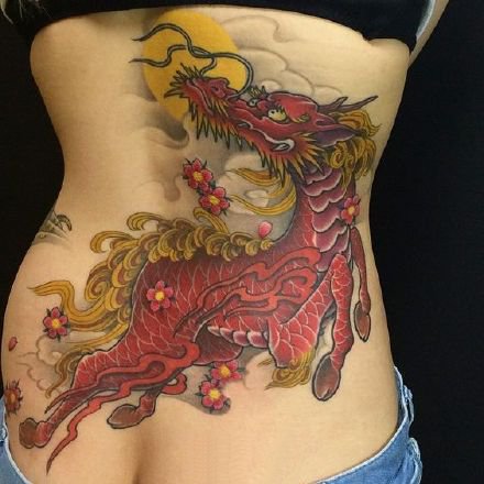 新传统侧腰麒麟纹身图
