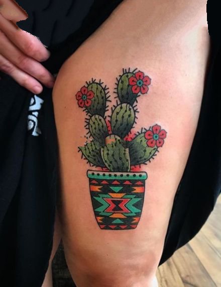 • 植物纹身 女生大腿上彩色的仙人掌纹身图片缩略频道推荐图