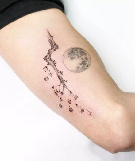 • 梅花和月亮搭配的一组小清新纹身图片