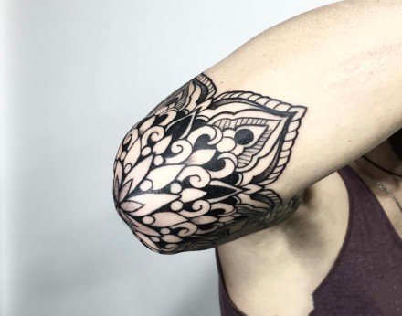 • 手肘纹身 小臂手肘处的9款黑色点刺梵花纹身图片
