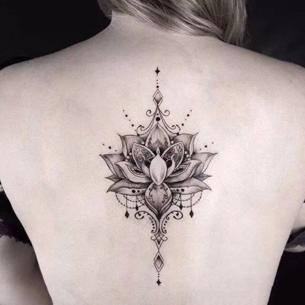 • 女生后背脊椎处唯美的莲花梵花纹身图案