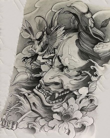 • 18款日式风格的般若等鬼怪面具纹身图案