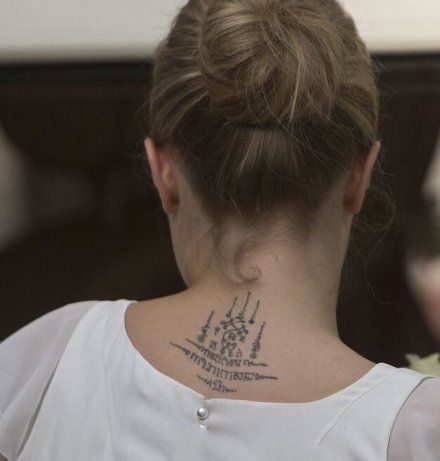 • 下巴下面脖子上的9款个性花体字纹身图片